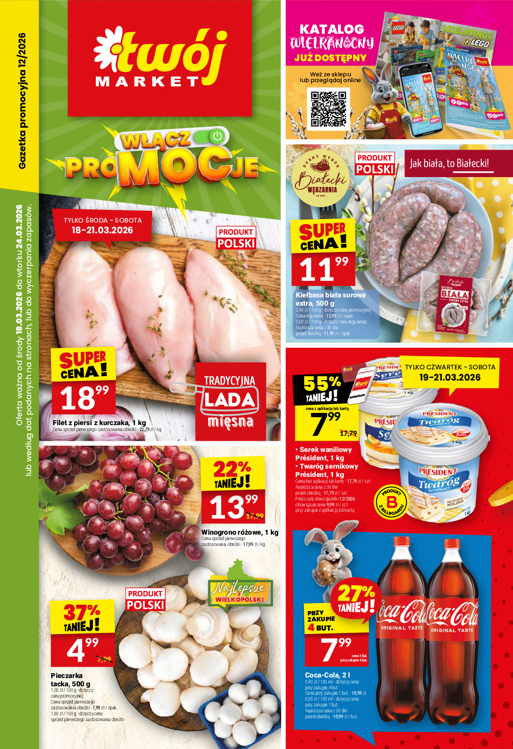 Przedstawiamy Państwu naszą najnowszą gazetkę promocyjną, w której znajdziecie produkty w najniższych cenach. Oferta obowiązuje w okresie 18.03 – 24.03.2026 lub według dat podanych na stronach, lub do wyczerpania zapasów.
